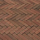 Gebakken bestrating in visgraat gelegd. Door verschillende
