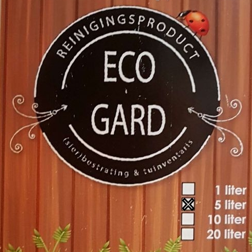 ECO-Gard is een natuurlijk vloeibaar reinigingsmiddel voor o.a. atmosferische aanslag op (sier) bestrating, stoeptegels, daken, muren, houten ongelakte schuttingen, vlonders en overige harde zuurbestendige ondergronden zoals glas en kunststofmaterialen, zoals bv speeltoestellen. ECO-Gard verwijdert tevens kalkresten van zuurbestendige ondergronden, zoals beton en (straat)stenen en geglazuurde tegels. ECO-Gard niet gebruiken op zuurgevoelige materialen, chroom, staal, marmer en kalkzandsteen. ECO-Gard is een milieuvriendelijk en volledig natuurlijk reinigingsmiddel, dat is gebaseerd op azijnzuur en zeep van plantaardige oorsprong. ECO-Gard bevat geen toxische of chemische stoffen en is volledig biologisch afbreekbaar conform normering OECD 301B.