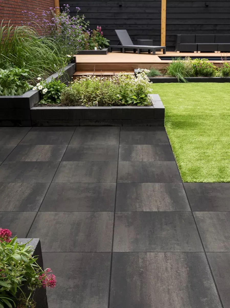 Estetico+ 60x60x4 Donker Grijs nuance. Een betontegel met indrukwekkende eigenschappen, de Estetico+ maakt van jouw buitenruimte een fijne plek. De betontegel is 60x60 cm met een dikte van 4 cm, waardoor het een perfecte solide basis is voor elke tuin. Met de keuze uit verschillende effen en genuanceerde uitstralingen zit er voor iedereen iets tussen in het assortiment Estetico+. Deze betontegel 60x60 cm is bruin van kleur. De betontegel bruin is dankzij de hydrofobe eigenschappen waterafstotend en minder vatbaar voor vuil. Hierdoor zien de betontegels er langer uit als nieuw. De tuintegels 60x60 cm zijn voorzien van dubbele impregnatie, wat duurzaamheid en een langere levensduur verzekert. Met een scherpe kant zonder facet straalt Estetico+ moderniteit en klasse uit. Een aanwinst in iedere buitenruimte!