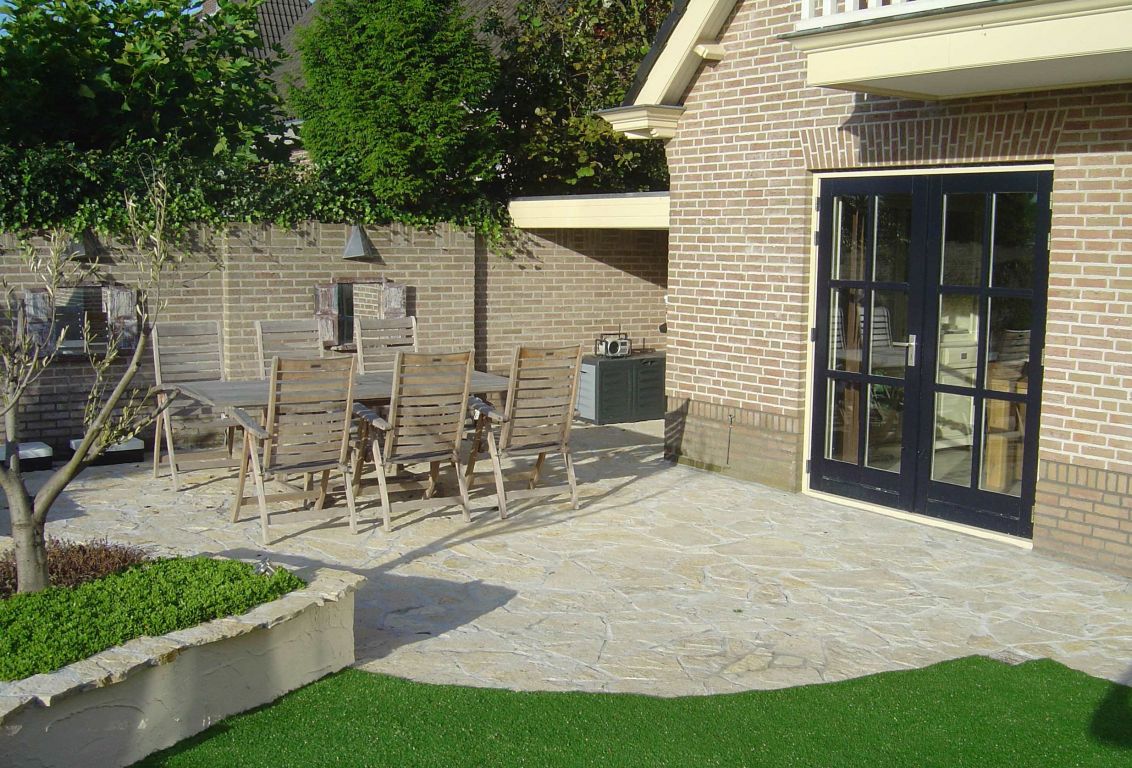 Flagstones Bourgogne. Flagstones zijn de meest oorspronkelijke bestratingsvorm in natuursteen. Mits vakkundig verlegd, misschien ook nog steeds de mooiste. Door de afwijkende vormen wordt er een sfeer gecreëerd die u anders alleen in het verre zuiden van Europa kan proeven. Haal de zomer naar uw eigen tuin met Flagstones!