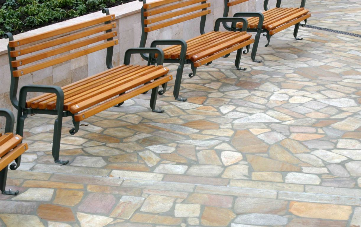 Flagstones Florida Yellow. Flagstones zijn de meest oorspronkelijke bestratingsvorm in natuursteen. Mits vakkundig verlegd, misschien ook nog steeds de mooiste. Door de afwijkende vormen wordt er een sfeer gecreëerd die u anders alleen in het verre zuiden van Europa kan proeven. Haal de zomer naar uw eigen tuin met Flagstones!