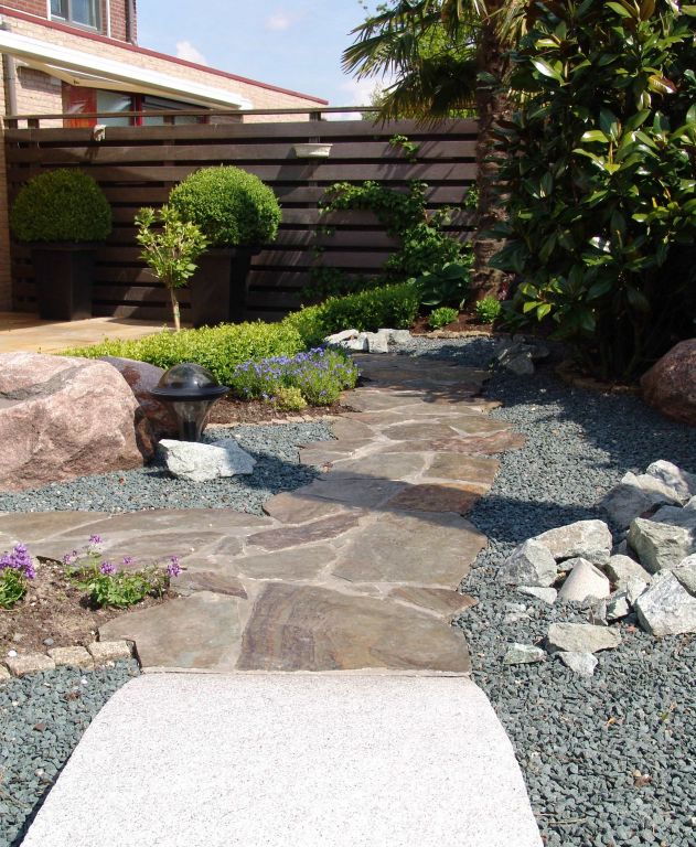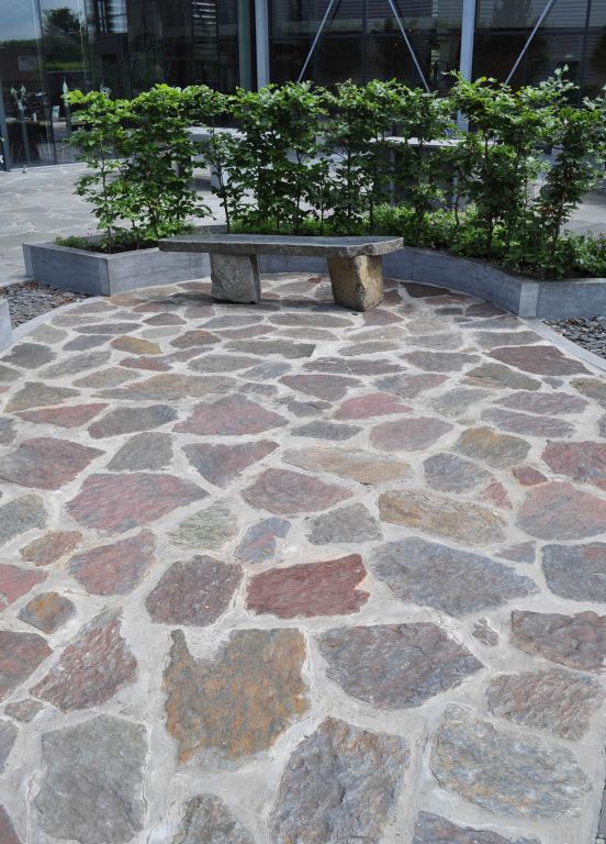 Flagstones Violetto. Flagstones zijn de meest oorspronkelijke bestratingsvorm in natuursteen. Mits vakkundig verlegd, misschien ook nog steeds de mooiste. Door de afwijkende vormen wordt er een sfeer gecreëerd die u anders alleen in het verre zuiden van Europa kan proeven. Haal de zomer naar uw eigen tuin met Flagstones!