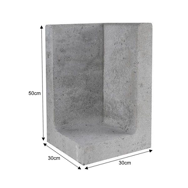 L-hoekelement Grijs 30x30x50cm. Heb je een leuk idee voor een bankje, houtopslag, plantenbak of iets anders? U en L-elementen zijn multifunctionele hulpmiddelen voor allerlei creatieve constructies. L-elementen kun je ook toepassen als keerwand om de grond van hoger gelegen delen te vangen. Deze elementen hebben een robuuste uitstraling. Ze zijn gemaakt van beton in de kleurtinten grijs, roestbruin en zwart. Het grote voordeel is dat je jarenlang plezier hebt van deze oersterke en multifunctionele elementen, die uiteindelijk altijd kunnen worden gerecycled in een nieuw product.
