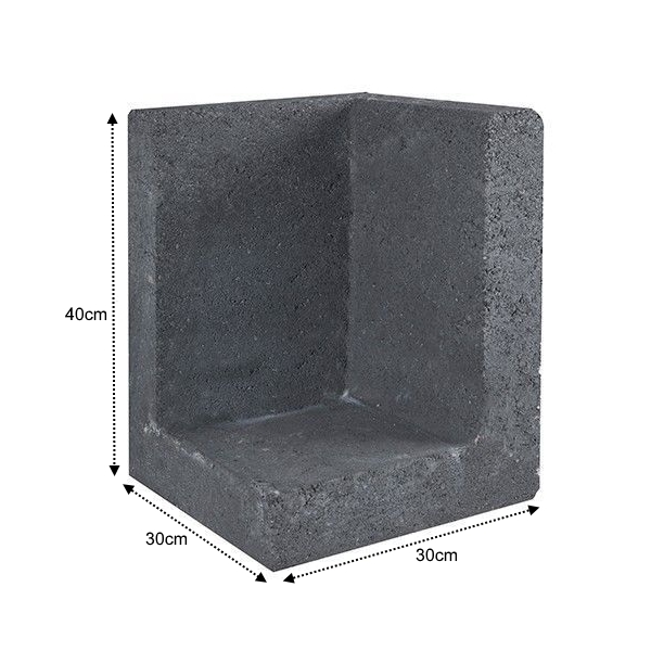 L-hoekelement Zwart 30x30x40cm. Heb je een leuk idee voor een bankje, houtopslag, plantenbak of iets anders? U en L-elementen zijn multifunctionele hulpmiddelen voor allerlei creatieve constructies. L-elementen kun je ook toepassen als keerwand om de grond van hoger gelegen delen te vangen. Deze elementen hebben een robuuste uitstraling. Ze zijn gemaakt van beton in de kleurtinten grijs, roestbruin en zwart. Het grote voordeel is dat je jarenlang plezier hebt van deze oersterke en multifunctionele elementen, die uiteindelijk altijd kunnen worden gerecycled in een nieuw product.
