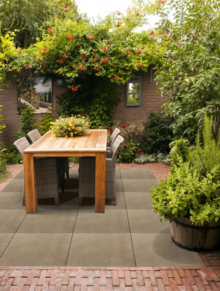 Passiona 60x60x3cm Mocha. Waar keramiek en natuursteen elkaar ontmoeten in beton, ontstaat de Passiona tegelserie. Een sterke, duurzame en onderhoudsvriendelijke tegelserie waarbij de natuurlijke uitstraling mediterrane sferen ademt. De serie is opgebouwd uit neutraal gekleurde gevlamde tegels die zich uitstekend laten combineren met de mozaïeken in bijpassende kleurtinten. De Passiona heeft een dubbele impregnatie en een geborstelde afwerking. Dankzij de hydrofobe eigenschappen is de tegel waterafstotend en het oppervlak blijft langer schoon. Uniek aan deze tegel is het digitaal geprinte design en de genuanceerde uitstraling. De Passiona met mini facetrand is een uitstekende keuze om de tuin een upgrade te geven!