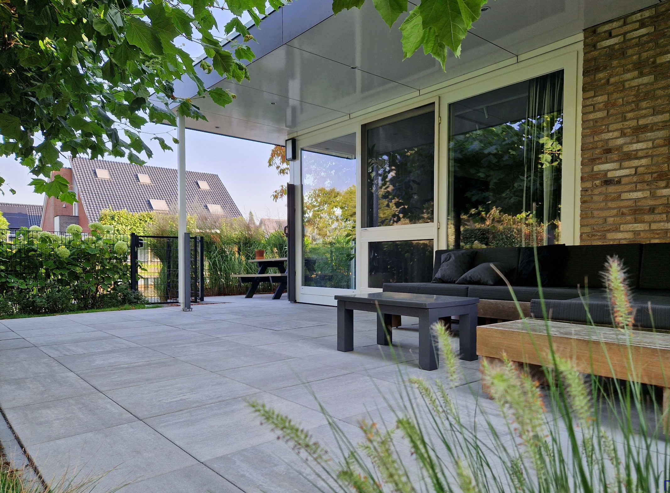 Patio Square 60x60x4cm Concrete. De 60x60 terrastegel behoort tot de populaire tegels van Kijlstra. Het formaat van deze tuintegel geeft een ruimtelijk effect, waardoor uw tuin groter lijkt. Kortom, een tegel geschikt voor elke tuin. De Patio-producten behoren tot de top van Kijlstra. Deze stenen en tegels zijn voorzien van een deklaag met een diepere kleur die gehydrofobeerd en gecoat is. De deklaag is hierdoor, bij het juiste onderhoud, waterafstotend waardoor groene aanslag en kalkuitbloei minder kans krijgen. Uw bestrating blijft langer mooi, kortom een duurzame keuze.