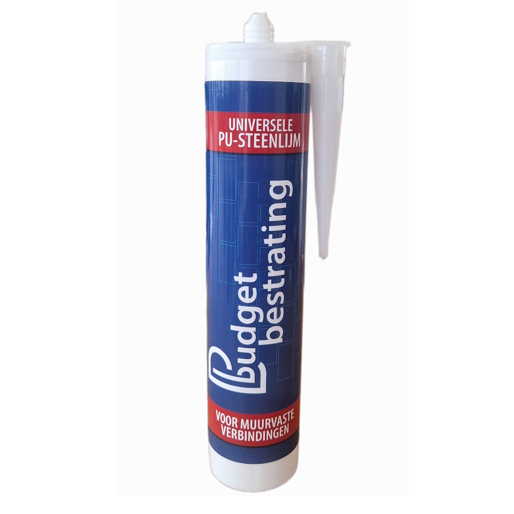 Budget Bestrating PU Steenlijm geeft een krachtige hechting op allerlei ondergronden zoals natuur-, cement,- en baksteen, hout, verschillende metalen en keramiek.