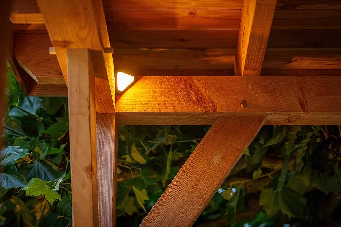 Tiga Corner. Verlicht jouw overkapping met onze Tiga Corner! Deze unieke dimbare lamp is in elke gewenste hoek te plaatsen door middel van de bijgeleverde beugel. Monteer de beugel en plaats eenvoudig de lamp erin. Stel zelf het gewenste licht in door middel van de dimknop en klaar!