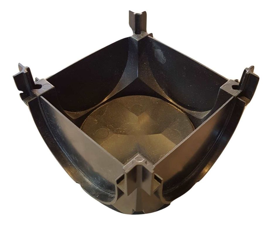 Deze hoekoplossing heeft 4 female aansluitingen een goot heeft één male en één female aansluiting het is dus niet mogelijk om zonder zaag- en lijmwerk een vierkant te maken.